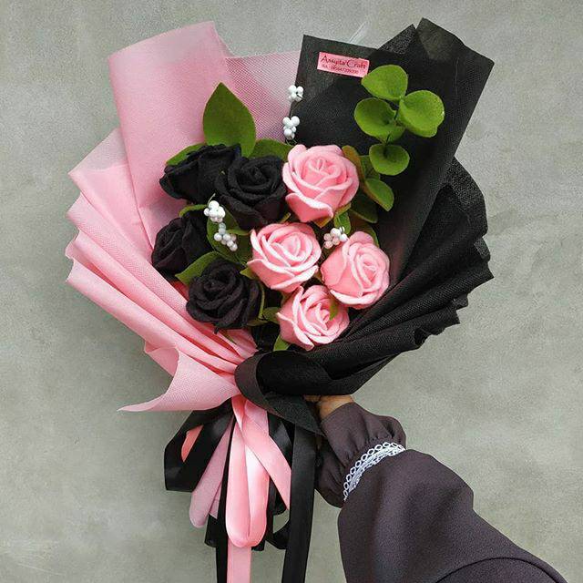 Black Pink Bouquet Buket Bunga Flanel Kado Wisuda Kece Graduation Buket Bunga Wisuda Shopee Indonesia