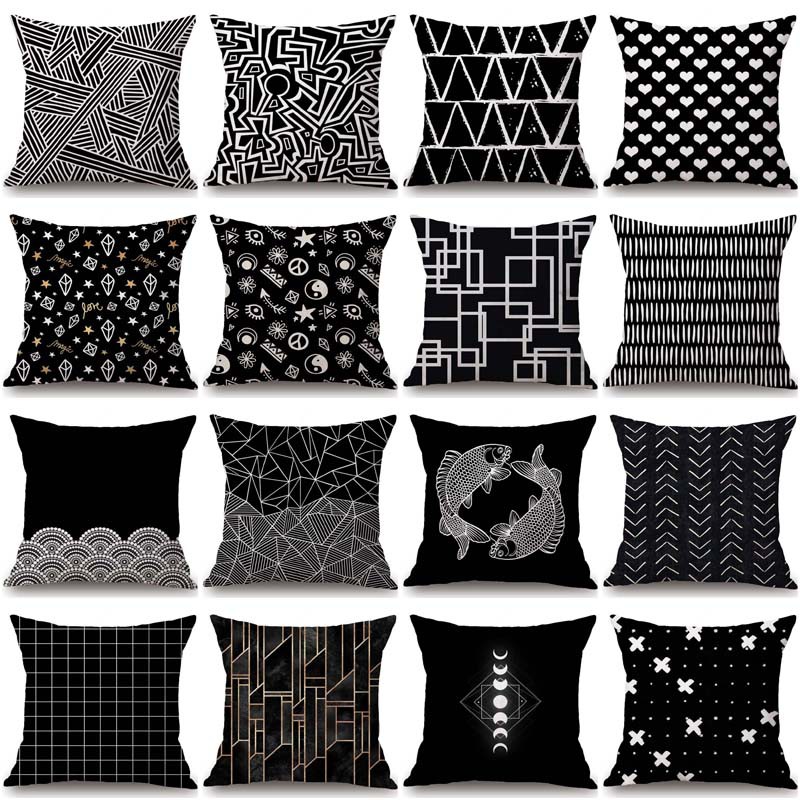 Sarung Bantal Sofa Motif Geometris Warna Hitam Putih Untuk Dekorasi Rumah Shopee Indonesia