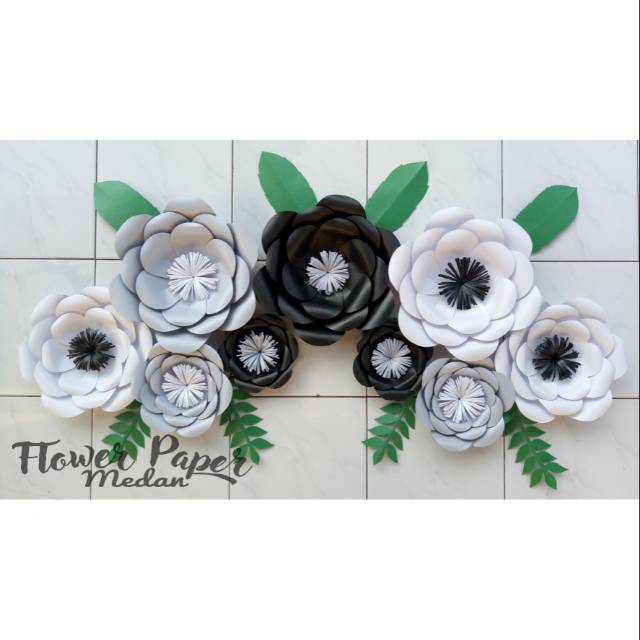 Paper Flower Bunga Kertas Dekorasi Backdrop Warna Hitam Abu Dan Putih Shopee Indonesia