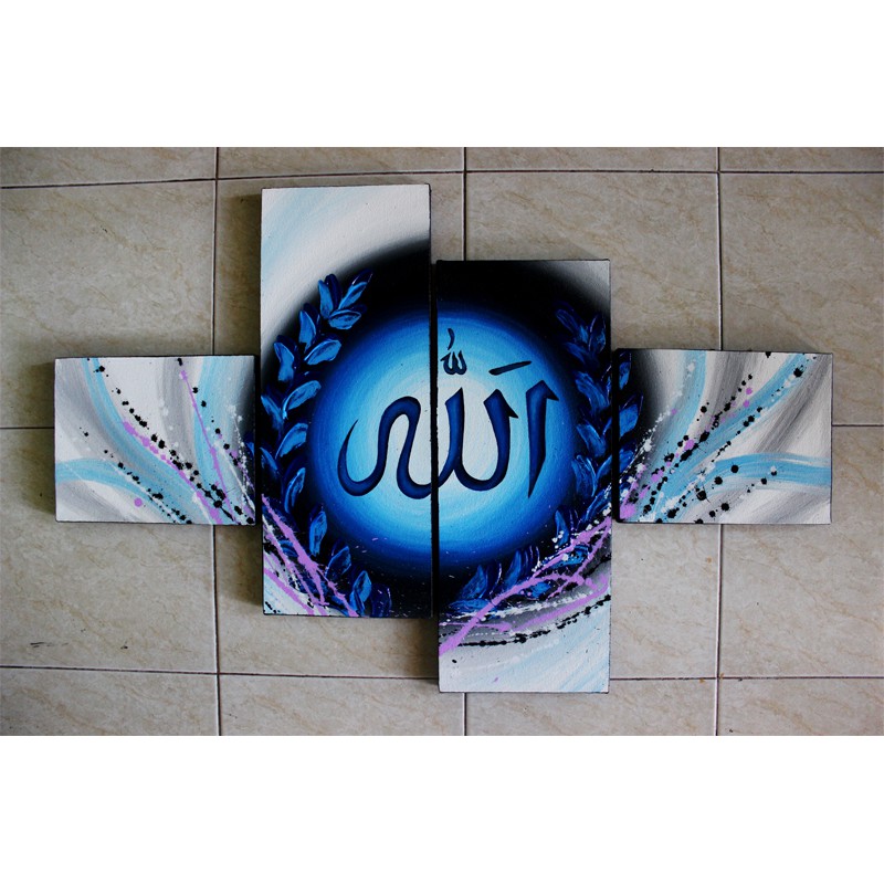 Lukisan Kaligrafi Lafadz Allah Biru Minimalis Hiasan Dinding Dekoratif Dekorasi Rumah Shopee Indonesia