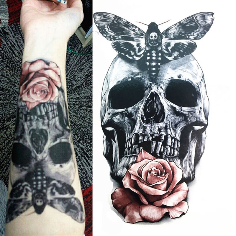 Anggun Tahan Air Tema Tengkorak Dan Mawar Tato Temporer Besar Lengan Tato Badan Stiker Lazada Indonesia