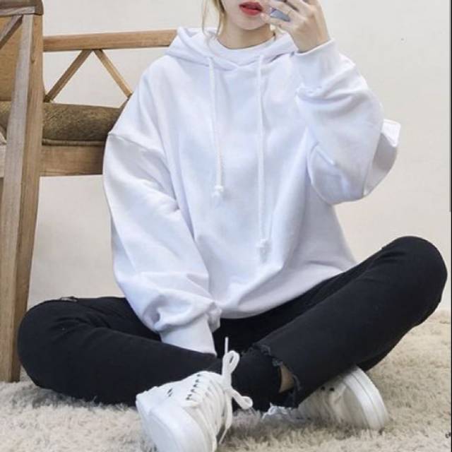 Sweater Hoodie Polos Putih Sweater Polos Pria Wanita Shopee Indonesia