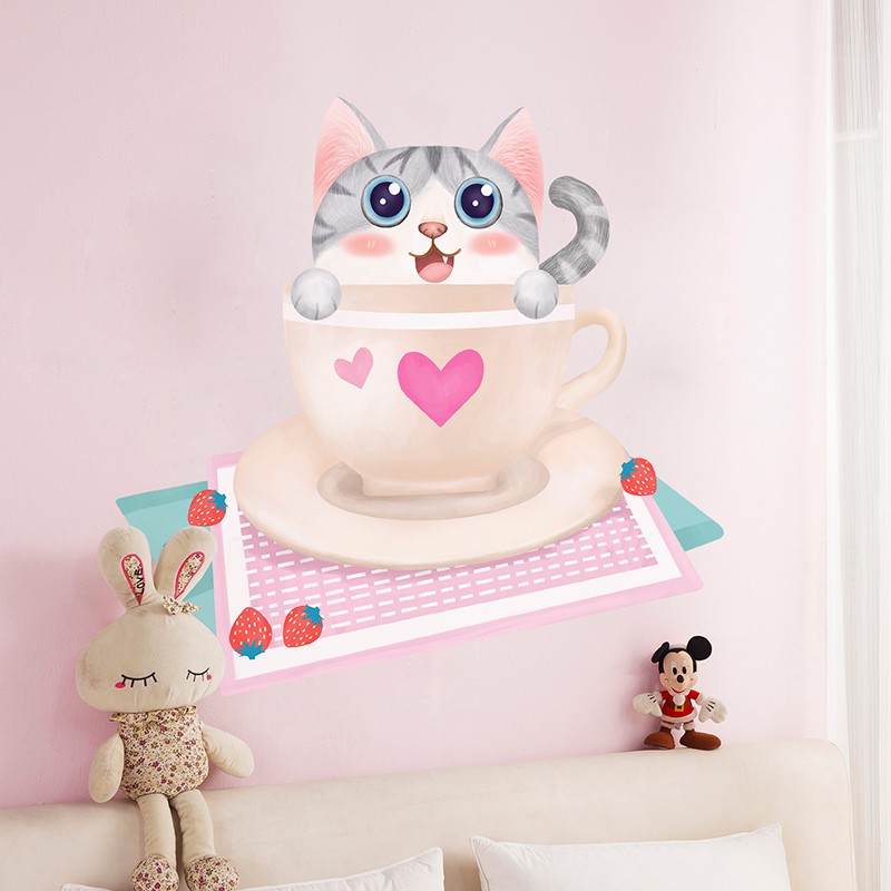 Lucu Kartun Kucing Stiker Dinding Kamar Tidur Samping Tempat Tidur Ruang Tamu Sofa Latar Belakang Hiasan Dinding Stiker Wallpaper Perekat Diri Shopee Indonesia