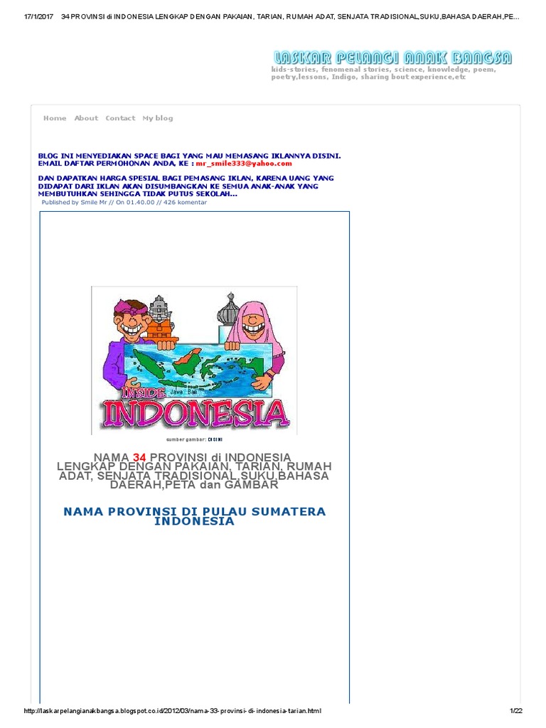 34 Provinsi Di Indonesia Lengkap Dengan Pakaian Tarian Rumah Adat Senjata Tradisional Suku Bahasa Daerah Peta Dan Gambarlaskar Pelangi Anak Bangsa Pdf