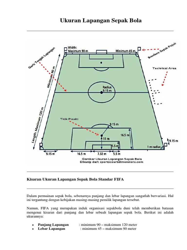 Ukuran Lapangan Sepak Takraw Standar Nasional ... from i0.wp.com Tidak heran jika terdapat pertandingan sepak bola pasti stadion akan selalu penuh dengan pendukung tim yang bertanding. Di bagian tengah kedua ujung lapangan, terdapat area gawang yang berupa persegi empat dengan lebar 7.32. Lapangan sepakbola berbentuk persegi panjang dan permukaannya terbuat dari rumput alami atau buatan.